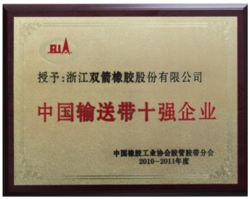 我公司被授予為“2010-2011年度中國(guó)輸送帶十強(qiáng)企業(yè)”